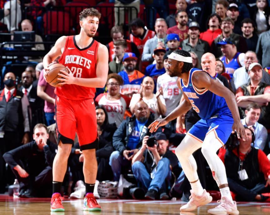这也是最近几年火箭队一直用的内线组合模式,这首发五虎看起来攻守兼备,内线有申京得分,还有小史密斯可以拉到外线投三分,杜兰特更是一位超级得分手,而阿门・汤普森和范弗里特组成的后卫线防守能力一流,范弗里特能投三分能组织进攻,阿门・汤普森的突破能力和传球能力也相当了得,他甚至还是一位内线得分高手。