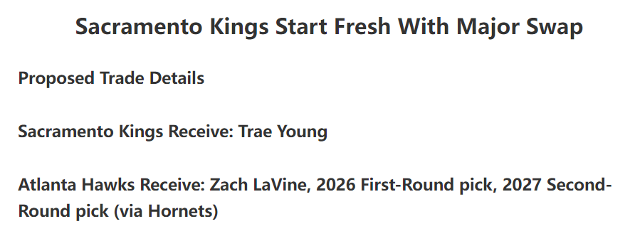 国王换特雷杨的方案,国王送出拉文、2026年首轮签、2027年黄蜂次轮签。