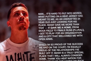 作为一个只想找到归属的24岁落选秀,迈阿密给予我的远不止于此——它给了我一个家。从苏福尔斯(发展联盟)到(多次)打进总决赛,我有幸为一支球队和一座张开双臂欢迎我的城市效力。