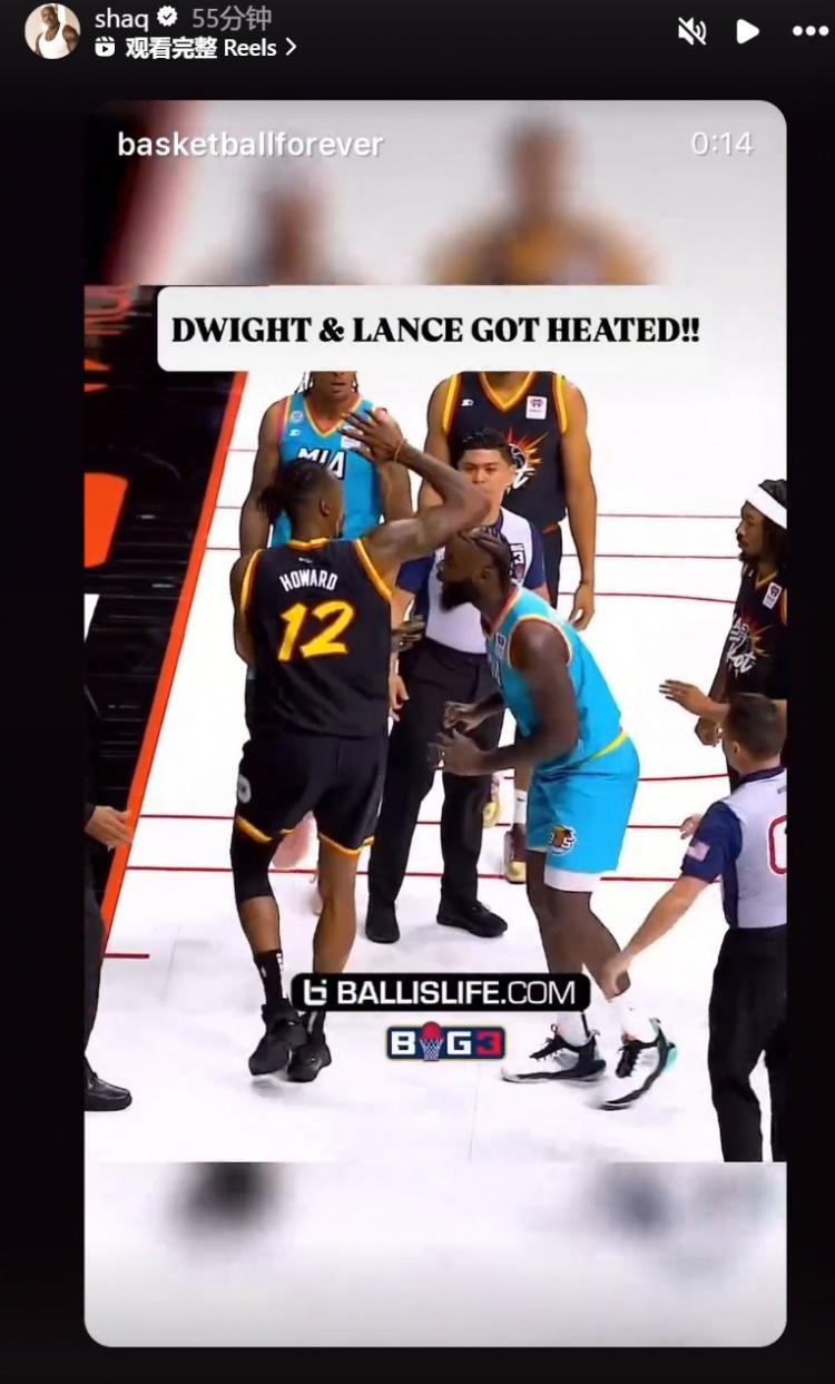 值得一提的是,NBA名宿奥尼尔转发了这一冲突。
